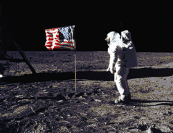 - le drapeau bouge davantage dans le vide que dans l'air parce qu'il a été touché par l'astronaute et que la résistance de l'air ne s'exerce plus pour ralentir l'oscillation. L'illusion d'un souffle d'air le faisant bouger est bien une illusion ; il bouge uniquement parce qu'il a été manipulé par l'astronaute ; il met beaucoup de temps à s'arrêter de bouger, en absence de frottement avec l'air ; la réplique dans une chambre à vide du drapeau d'après les plans originaux en témoigne ;