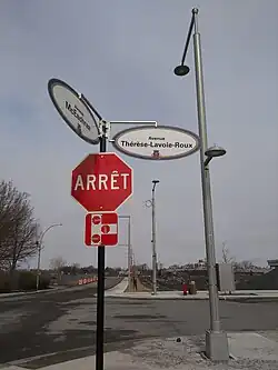 L'axe central du campus MIL de l'Université de Montréal à Outremont porte l'odonyme « Avenue Thérèse-Lavoie-Roux » (45° 31′ 23″ N, 73° 37′ 06″ O).