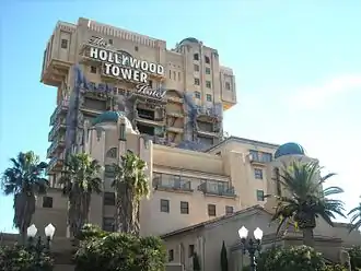- The Hollywood Tower Hotel, le nom de l'hôtel qui est « maudit », dans lequel se déroule l'attraction. Il est nommé Hightower Hotel au Japon.