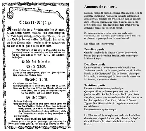 - ↑ (en) Pamela L. Poulin, « The Basset Clarinet of Anton Stadler », College Music Symposium, vol. 22, no 2, , p. 67-82 (lire en ligne).