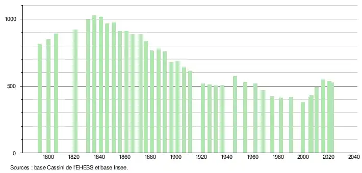 - ↑ Population municipale de référence en vigueur au 1er janvier 2025, millésimée 2022, définie dans les limites territoriales en vigueur au 1er janvier 2024, date de référence statistique : 1er janvier 2022.