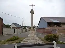 Calvaire au bord de la D 23 en direction de Wavignies, avec repère de nivellement.