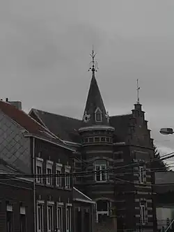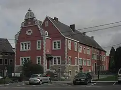 - L'hôtel de ville (1888) et son porche surplombant la rue.