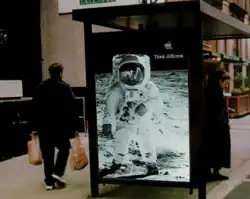 Le slogan « Think different » a notamment été utilisé dans un célèbre spot publicitaire, diverses annonces dans la presses et sous forme d'affichage urbain.