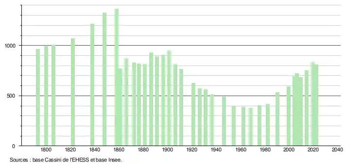 - ↑ Fiches Insee - Populations de référence de la commune pour les années 2006, 2007, 2008, 2009, 2010, 2011, 2012, 2013, 2014, 2015, 2016, 2017, 2018, 2019, 2020, 2021 et 2022.