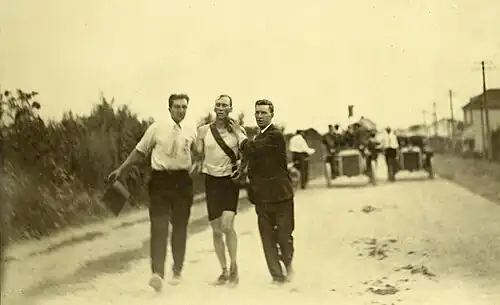2. (en) « Hicks Victorious in Chicago Run: Cambridge Boy Leads Field of 30 in Marathon, His Time Being 3h 2m." », Boston Daily Globe, , p. 12