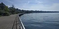La commune est également bordée au nord par le Léman, le plus grand lac alpin et subalpin d'Europe centrale et d'Europe de l'Ouest. Le Léman est traversé d'est en ouest par le Rhône, fleuve franco-suisse qui, avec 75 % des apports, constitue le principal affluent du lac.