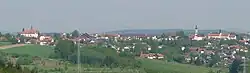 Place du village, avec l'église paroissiale et la chapelle Notre Dame de Lorette | |