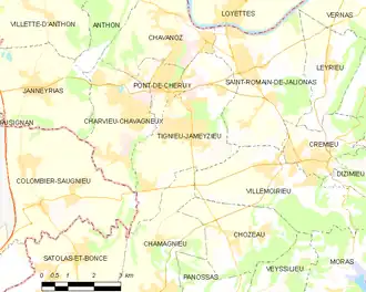 - ↑ « Orthodromie entre Tignieu-Jameyzieu et Colombier-Saugnieu », sur fr.distance.to (consulté le ).