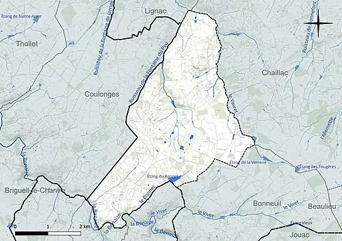 Les communes limitrophes sont Bonneuil, Chaillac, Lignac, Coulonges-les-Hérolles, Lussac-les-Églises et Saint-Martin-le-Mault.