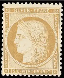Cérès, 15 centimes bistre-jaune, dentelé, dit « petits chiffres »