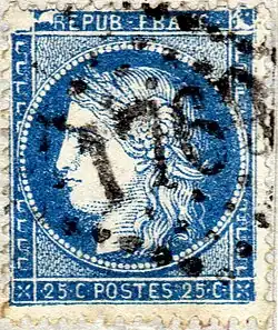 - ↑ « Le 25 c Cérès bleu : ses cicatrices racontent son histoire (2e partie) », Timbroscopie, no 88, , p. 46.