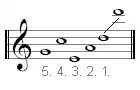 Les cordes ne vont pas de la plus grave vers la plus aiguë comme sur une guitare. Dans la forme la plus courante de l'instrument, à cinq cordes, la corde la plus grave est la corde de mi (la 3e), puis la corde de sol (la 5e), puis la corde de la (la 2e), puis la corde de do (la 4e) et enfin la corde de ré (la 1re). Les cinq cordes sont à l'intérieur de la même octave.