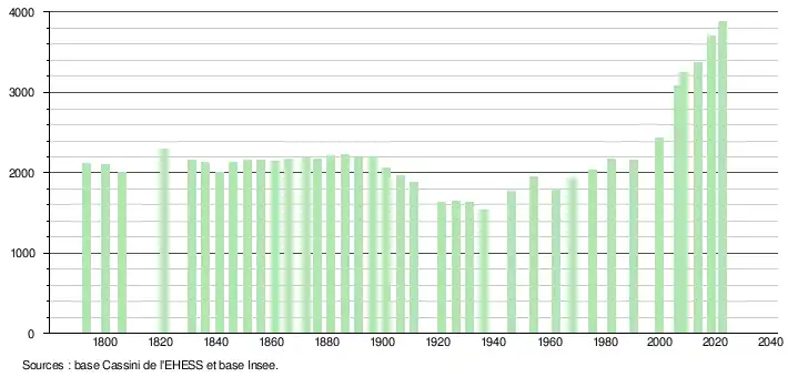 3 877 hab. (2022 en évolution de +8,75 % par rapport à 2016en évolution de +8,75 % par rapport à 2016)
