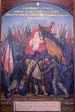 Après la construction de l’État fédéral en 1848, le but de ces fêtes est d’amener et de consolider l’amour de la Patrie dans le cœur des diverses populations qui forment la nouvelle Confédération (comme Willensnation).