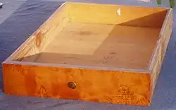 Les tiroirs peuvent être construits d’une variété de manières et à l’aide d’une variété de matériaux. Le bois et les matériaux composites à base de bois, tôle ou plastique sont des matériaux couramment utilisés pour confectionner les tiroirs et les meubles, dont font partie les tiroirs. Les tiroirs en bois sont souvent fabriqués de telle sorte que la face avant soit complète et que le grain des pièces latérales ne se voie pas. Les coins peuvent être imbriqués pour l’esthétique ou pour ajouter de la solidité supplémentaire. Une queue d’aronde aveugle est parfois utilisée pour les coins afin de cacher le joint. Pour fixer la pièce de fond du tiroir, une rainure peut être coupée dans les quatre pièces verticales pour insérer le fond du tiroir.