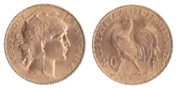 Le titre des pièces de 20 francs en or (depuis le franc germinal) jusqu'en 1914 était de 900 millièmes d'or fin et de 100 millièmes de cuivre.