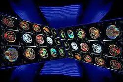 - Numérisation 3D d'animaux congelés ou préservés dans un fluide conservateur[17]. L’injection d’iode dans certains organes d’un animal (grenouille par exemple) permet en outre de visualiser de manière très précise les muscles, glandes, le système nerveux, des œufs, des parasites, etc. Il est ainsi prévu de numériser environ 20 000 animaux conservés dans plus d'une quinzaine de musées américains à partir de , dans le cadre du projet « Open Exploration of Vertebrate Diversity in 3D » (plus souvent dénommé scan-all-vertebrates), doté de 2,5 millions de dollars et soutenu par la National Science Foundation. Un représentant de 80 % des genres de vertébrés connus sera traduit en image 3D et environ 1 000 spécimens seront colorés à l’iode pour montrer les tissus mous, tels que muscles, système circulatoire, cerveau, etc.[17]. Ces rendus 3D seront stockés dans la base « MorphoSource »[18] à l'Université Duke de Caroline du Nord[17]. Ils seront gratuitement disponibles à condition de ne pas en faire d’usage commercial au service de la Recherche dans des domaines tels que le biomimétisme, l'anatomie comparée, la biologie du développement, la biométrie, etc. Il devient ainsi possible d’étudier dans le monde entier les détails anatomiques des organismes uniques, rares ou menacés, à partir de seulement un ou deux spécimens connus[17]. Ces rendus 3D trouveront probablement aussi d'éventuelles valorisations pédagogiques via les imprimantes 3D et les casques de réalité virtuelle.