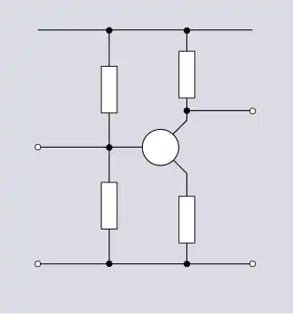 Il est normal de qualifier un réseau de topologie de pont uniquement si on l'utilise comme un réseau à deux ports où les ports d'entrée et de sortie sont chacun constitués d'une paire de nœuds diagonalement opposés. On peut considérer la topologie de boîte de la figure 1.7 identique à la topologie de pont, mais dans le cas du filtre, les ports d'entrée et de sortie seront chacun une paire de nœuds adjacents. On inclut parfois dans la topologie de pont la composante de chargement (ou d'indication nulle) sur le port de sortie du pont, tel qu'illustré à la figure 1.9[7].