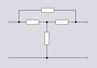 Une topologie à double T existe aussi avec des applications pratiques où il est souhaitable que les entrées et les sorties partagent une borne de masse. Un exemple d'un tel cas est lorsque les connexions d'entrée et de sortie sont faites avec une topologie coaxiale. Une topologie de pont normale ne permet pas la connexion entre une borne d'entrée et de sortie. Pour cette raison, la topologie à double T est utilisée dans les cas où un pont serait par ailleurs utilisé pour des applications d'équilibrage ou de mesure nulle. Cette topologie est également utilisée dans l' oscillateur à double T comme générateur d'onde sinusoïdale. La partie inférieure de la figure 1.11 montre une topologie à double T redessinée dans le but de souligner la connexion avec la topologie de pont[8].