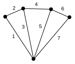 - ↑ Distance between trees is defined as the number of edges that are in one tree but not in the other. That is, it is the number of edges which must be changed in order to transform one tree into the other (Kishi and Kajitani, p.323).