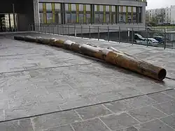 Le Chemin d'eau est une sculpture créée par l'artiste Vincent Barré, composée de sept tuyaux en fonte de fer oxydée[253] posée sur la rampe d'accès à la sous-préfecture de Torcy, d'une longueur totale de 14 mètres. Il s'agit d'une commande de la préfecture de Seine-et-Marne dans le cadre du 1% artistique. Le Chemin d'eau a été réalisé entre juin et décembre 2005, mais l'œuvre a été exposée au public le même jour que l'inauguration de la sous-préfecture, c'est-à-dire le [254]. Le Chemin d'eau est une œuvre qui a créé une controverse lors de son installation, aussi bien pour son aspect (laissant penser que les travaux de la sous-préfecture n'étaient pas encore achevés) que pour son coût[255].