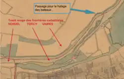 À cette époque, le nom de la ville est attesté sous la forme Torciacum, puis Torciaco[50] à l'époque médiévale. Au Moyen Âge, la ville était appelée en picardTorchi comme on peut le lire dans le poème Le Tournoi des Dames d'Hugues III d'Oisy datant du XIIesiècle. L'appellation Torcy en Brie est connue dès le XVesiècle[51] et perdure jusqu'au XIXesiècle et enfin le nom actuel Torcy apparaît déjà au début du XXesiècle comme on peut le découvrir dans les anciennes cartes postales d'époque[52].
