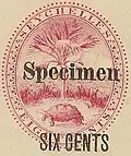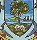 Comme pour les Iles Caïmans, les Seychelles ont eu deux types de blason. Le premier comportait une Dipsochelys elephantina (tortue géante) abritée sous un palmier. Ce blason illustrait les premières ‘enveloppes entiers’ entre 1885 et 1910, puis a été repris sur les timbres jusqu’à l’indépendance, le .