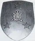 Au musée des Templiers de La Valette à Malte, un bouclier portant une tortue terrestre au naturel encadrée de trois étoiles d’or. Nos recherches, pour découvrir le Chevalier possesseur de cet écu ainsi que la symbolique de l’assemblage, sont restées vaines.