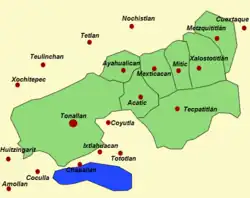 Il est entouré à l'ouest par le royaume coca de Chapallan, au nord par les caciquats tecuexes d'Acatic et de Tecpatitlán, à l'est et au sud par le royaume tarasque.