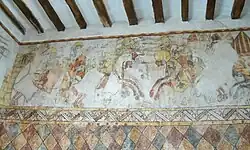 Deux autres fresques sont à signaler. La première montre un noble qui conte fleurette à une gente dame. La seconde, dans l'escalier, représente Marie portant sur ses genoux l'enfant Jésus dont le chef est ceint de la même couronne que porte Charles Ier.