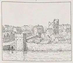 La tour Saint-Antoine, quant à elle, munie de créneaux et de mâchicoulis, baignait d'un côté dans la Loire et, de l'autre, dans le fossé et fut armée, elle aussi, de canons. Elle servit ensuite à un fripier, de retraite à des personnes de mauvaise vie puis est détruite en 1779, lors de la construction des quais[20]. La tourette ronde flanquant l'enceinte est, entre les deux grandes tours, avait déjà été démolie au début du siècle[21].