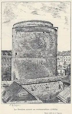 Le donjon avant sa restauration (1865). Dessin de Jean Légeron.
