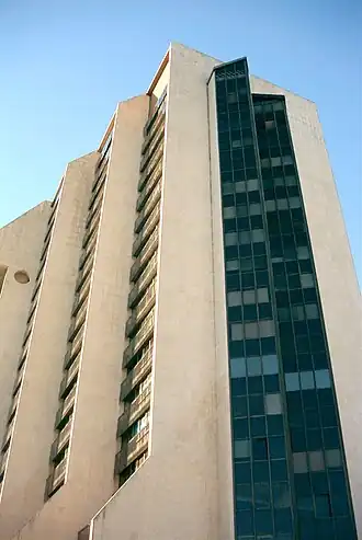 Cette tour constitue l'élément le plus frappant du panorama urbain de Montpellier. Elle se repère facilement grâce à sa forme en escaliers. En 2004, la façade nord a été en partie repeinte. Outre les fonctions d'hôtel et de commerces, la tour abrite des bureaux et des logements.
