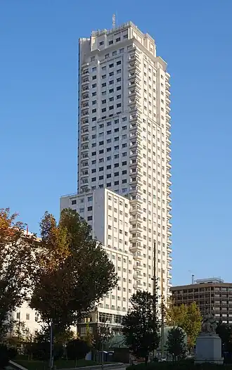 À son achèvement, il s'agit du plus haut immeuble de Madrid et d'Europe occidentale. Il n'est dépassé en hauteur à Madrid qu'en 1989 par la tour Picasso et en Europe occidentale par la tour du Midi achevée en 1967 à Bruxelles. L'immeuble comprend toujours en 2016 l'appartement résidentiel le plus haut de Madrid. En 2024 il reste l'un des dix plus haut gratte-ciel de Madrid