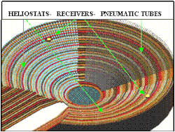 Certaines centrales thermiques solaires sont constituées d'une tour solaire thermique et d'héliostats. La tour reçoit la lumière du soleil concentrée par les héliostats. La technique solaire thermique concentrée est vue comme une solution viable d'énergie renouvelable permettant une production d'énergie sans pollution, avec une technologie disponible.