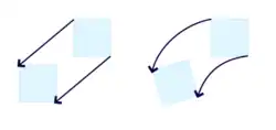 Dans les deux approches, le tourbillon est une quantité vectorielle dont la direction est le long de l'axe de rotation du fluide. Ainsi, pour un flux à deux dimensions quelconque (a et b), le vecteur de tourbillon se retrouve dans l'axe perpendiculaire au plan de rotation (c) et l'équation se réduit à :