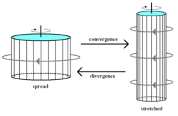 Conservation du tourbillon potentiel menant à de la convergence et de la divergence dans le fluide.