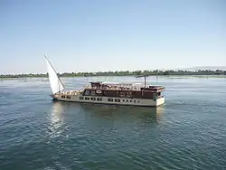 De nombreuses croisières se déroulent à bord de grands navires qui fonctionnent comme des hôtels flottants. D'autres voyages sur le Nil peuvent se faire sur une felouque, un voilier traditionnel, au rythme de l'eau, uniquement poussés vers le delta du Nil par le vent et les courants, invitant ainsi les passagers à profiter du cadre naturel et à observer les berges du Nil[35].