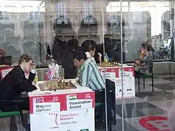 Magnus Carlsen participa cinq fois : en 2008 (vainqueur de Wijk aan Zee), 2010 (vainqueur de wijk aan Zee, Medias, Nankin et Londres), 2011 (vainqueur de Londres, Medias et Bienne), 2012 (vainqueur à Moscou, mémorial Tal) et 2016 (vainqueur du tournoi de Wijk aan Zee).