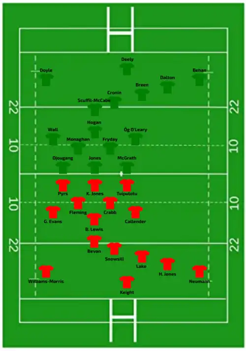 - 8 essais de Beckett (1re), Heard (15e), Kildunne (20e), M.Packer (25e), Talling (35e), Reed (70e) et Matthews (77e, 80e+2).