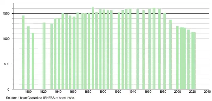 - ↑ Fiches Insee - Populations de référence de la commune pour les années 2006, 2007, 2008, 2009, 2010, 2011, 2012, 2013, 2014, 2015, 2016, 2017, 2018, 2019, 2020, 2021 et 2022.