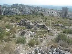 Propriété des seigneurs des Baux au Moyen Âge, le site est habité depuis bien plus longtemps[3]. Les premières traces d'occupation semblent remonter au IIe siècle av. J.-C.[1], même si des tessons retrouvés pourraient être plus anciens de deux à trois siècles. L'oppidum n'est fortifié qu'à partir du IIe siècle av. J.-C., période à laquelle il s'entoure d'un mur en brique crue sur un socle de pierres sèches large de 1,50 mètre[4]. Le parement en grand appareil est postérieur à ce premier rempart mais date approximativement de la même période ou au plus tard de la période augustéenne[1]. Contre le rempart, des cases à brique crues sur solin de pierres sont appuyées. Le rempart a beaucoup souffert. Ses blocs ont été prélevés au Moyen Âge pour permettre la construction de divers ouvrages. On considère qu'il devait se trouver deux portes au castrum, au nord et au sud, même s'il n'a pas été possible d'en apporter la preuve à ce jour[5]. Les pierres utilisées viennent probablement des Alpilles. Il s'agit d'un calcaire burdigalien typique des Baux ou du Montpaon[5]. Le premier rempart devait être en briques crues, comme le mur des maisons du castrum, tandis que le second rempart, de moindre qualité, était fait d'adobes.