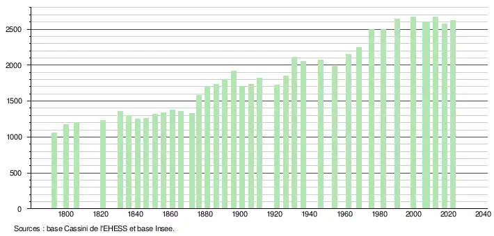- ↑ Population municipale de référence en vigueur au 1er janvier 2025, millésimée 2022, définie dans les limites territoriales en vigueur au 1er janvier 2024, date de référence statistique : 1er janvier 2022.