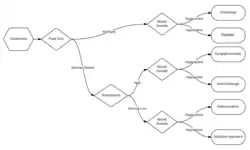 - spectre de dysfonctionnement du SNC : confusion, coma, apnée et convulsions. La mort est généralement due à une asphyxie induite par un trouble respiratoire de l'apnée centrale, un rétrécissement grave des voies respiratoires, une sécrétion pulmonaire excessive et à une paralysie des muscles respiratoires[5].