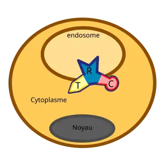 Après interaction avec son récepteur cellulaire, la toxine peut s’introduire dans le récepteur par endocytose.