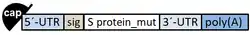 - une région 5' non traduite (ou 5'-UTR) issue d'une version modifiée du 5'-UTR de l’hémoglobine alpha humaine choisie pour sa capacité à produire de nombreuses protéines[23] ;