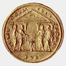 Deux multiples de la Tétrarchie au module de 10 aurei, connu comme des unicum et provenant du trésor, sont la propriété de l'American Numismatic Society[4].
