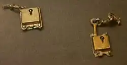 - deux fermetures en argent, restes de coffrets en bois ou en cuir ;