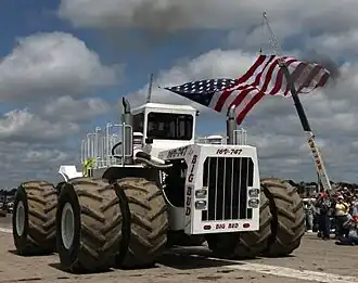 ↑ La puissance n'a aucun lien avec le nombre de roues motrices: le fait d'utiliser quatre roues motrices permet d'améliorer la capacité de traction du tracteur mais consomme également plus de puissance, les tracteurs les plus puissants sont vendus seulement avec quatre roues motrices, avec possibilité d'ajouter des roues jumelées.